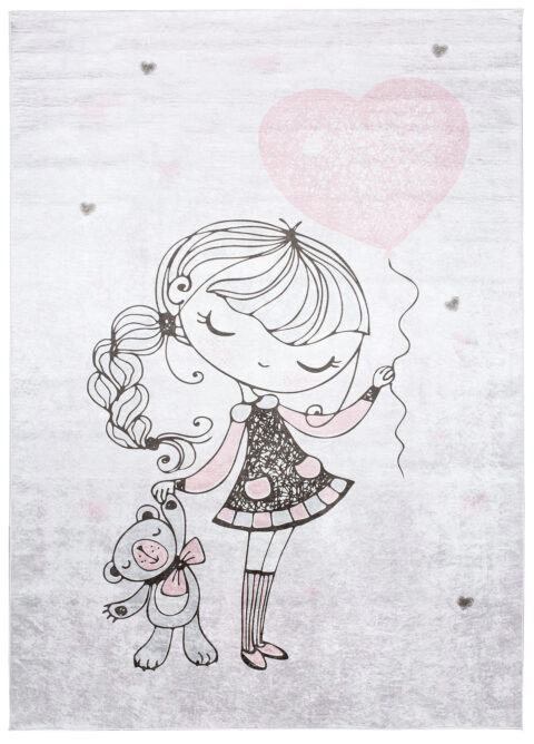 Dywan EmmaDziecięcy Szary Dziewczynka Miś Antypoślizgowy
