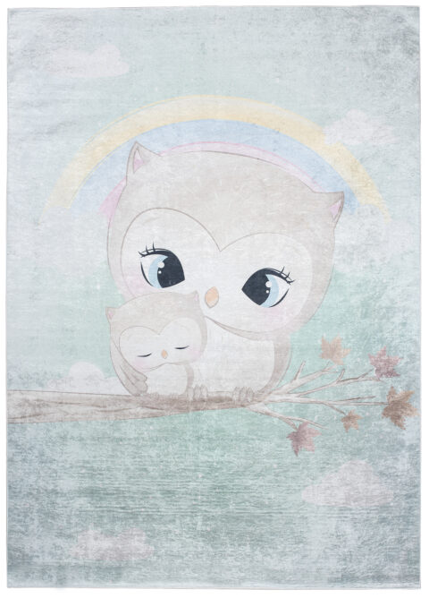 Dywan EmmaDziecięcy Turkusowy Sowa Antypoślizgowy