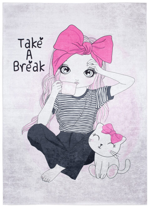 Dywan EmmaRóżowy Szary Dziewczynka Kot Antypoślizgowy
