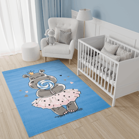 Dywan DziecięcyJolly Niebieski Szary Hipopotam