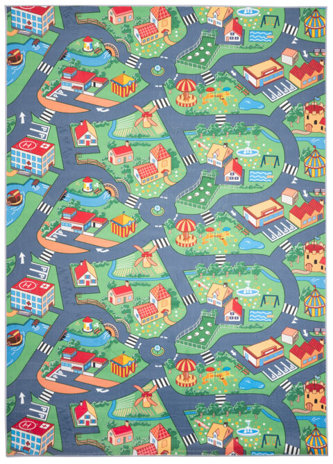 Dywan DziecięcyFlannel Zielony Miasto Ulice