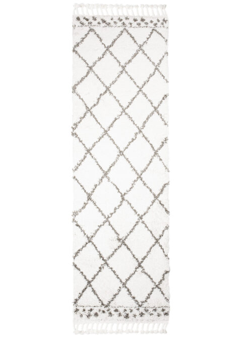Chodnik Bohoz Frędzlami Kremowy Trellis Shaggy