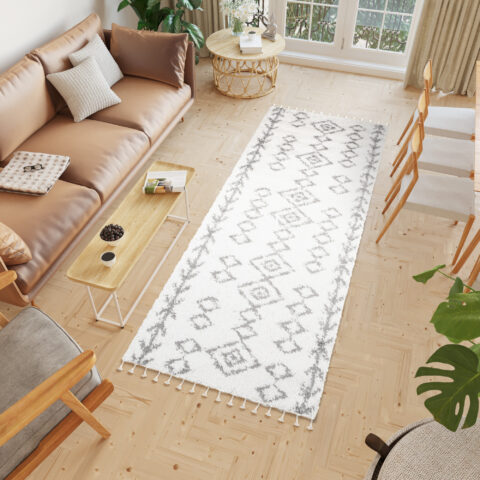 Chodnik Bohoz Frędzlami Kremowy Romby Shaggy