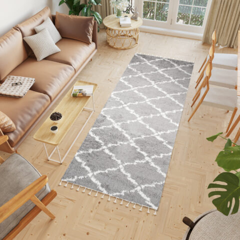Chodnik Bohoz Frędzlami Szary Trellis Shaggy
