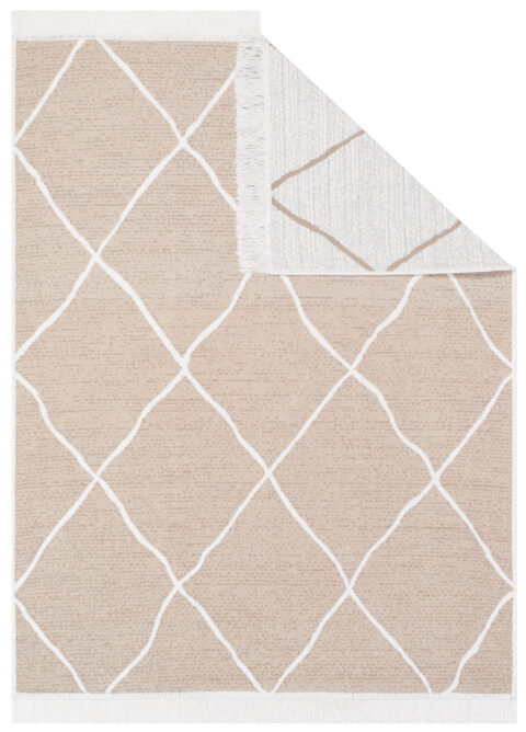 Dywan AztecaBawełniany Beżowy Romby z Frędzlami