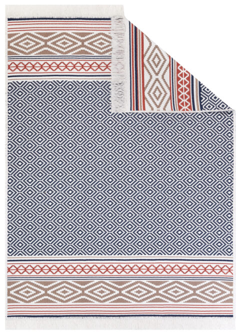 Dywan AztecaBawełniany Niebieski Czerwony z Frędzlami