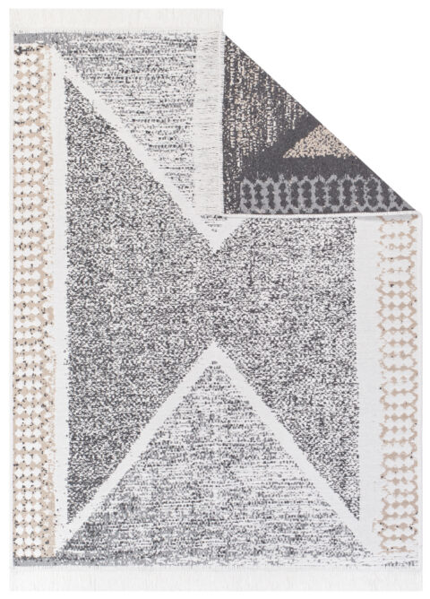 Dywan AztecaBawełniany Szary Beżowy Trójkąty z Frędzlami
