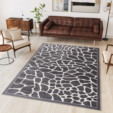 Dywan DreamCiemny Szary Print Zwierzęcy Ramka