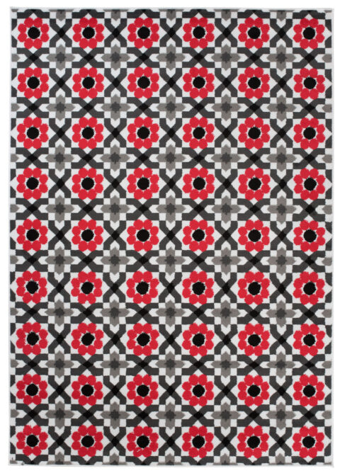 Dywan MayaSzary Czerwony Kwiatowa Mozaika