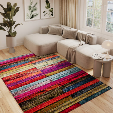 Dywan MayaSzary Czerwony Geometryczny Linie