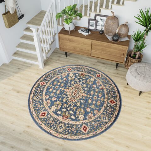 Dywan RivoliOkrągły Niebieski Kremowy Tradycyjny