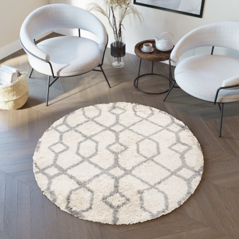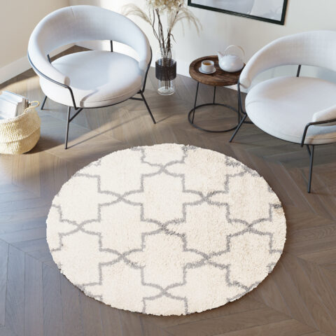 Dywan BohoOkrągły Kremowy Geometryczny Shaggy