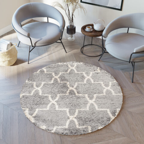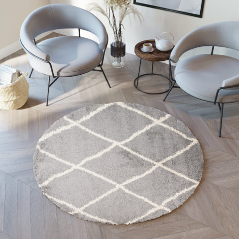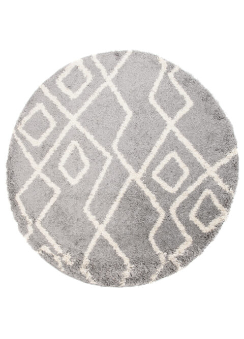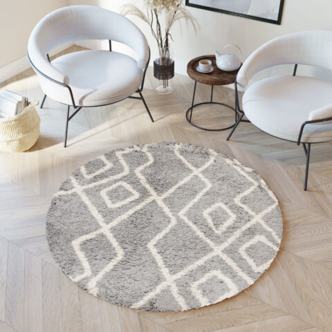 Dywan BohoOkrągły Szary Geometryczny Shaggy