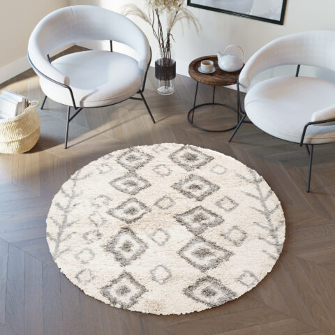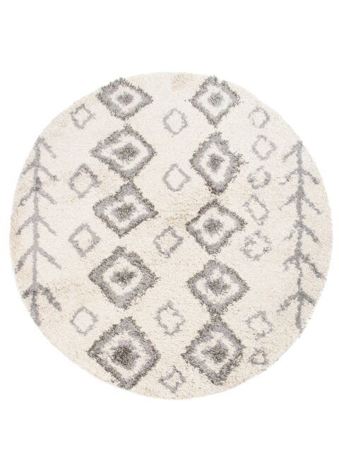 Dywan BohoOkrągły Kremowy Romby Shaggy