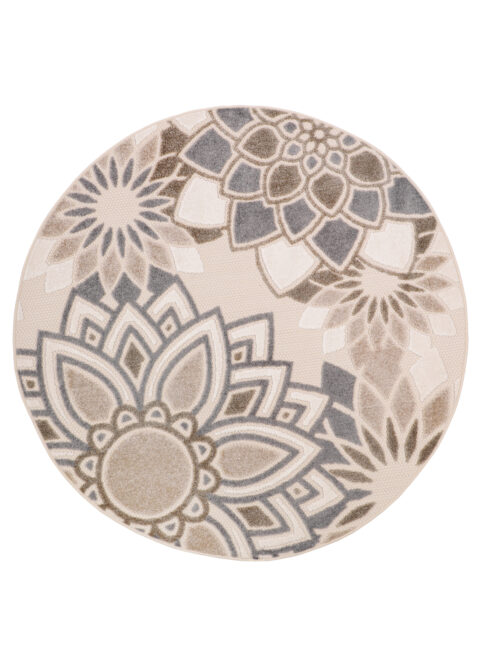 Dywan ZewnętrznyPatio Okrągły Kremowy Szary Kwiaty
