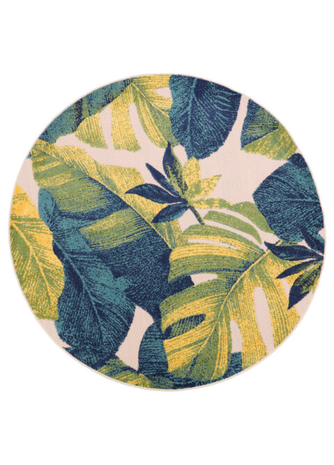 Dywan ZewnętrznyPatio Okrągły Kremowy Liście Palmy