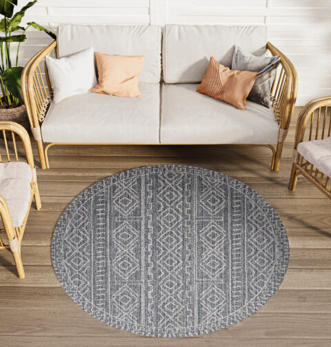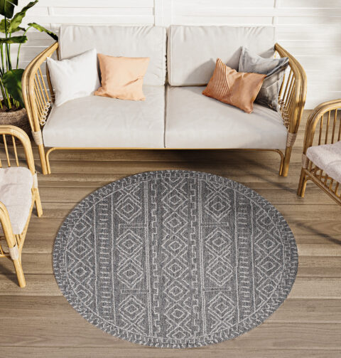 Dywan MelissaOkrągły Szary Ramka Indoor Outdoor