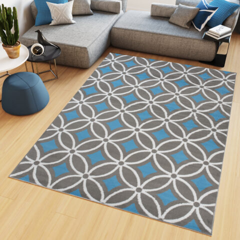 Dywan LazurSzary Geometryczny Kwadraty Koła