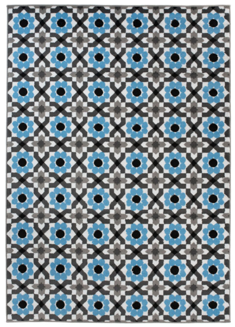 Dywan MayaSzary Niebieski Kwiatowa Mozaika