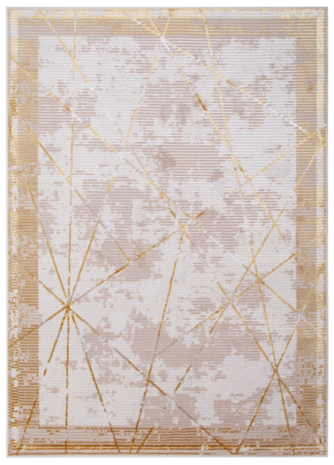 Dywan CrystalZłoty Beżowy Ramka Geometryczny Efekt 3D