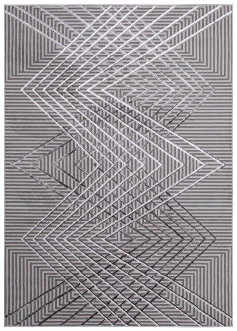 Dywan CrystalSzary Biały Geometryczny Linie Efekt 3D