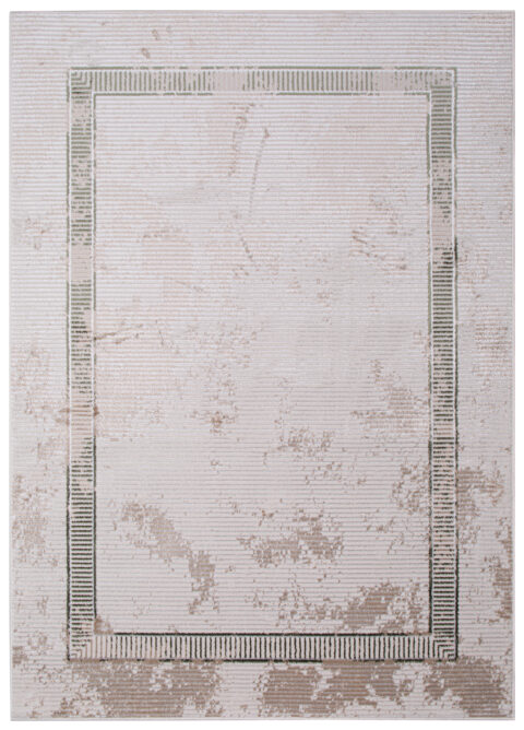 Dywan CrystalZielony Beżowy Ramka Przetarcia Efekt 3D