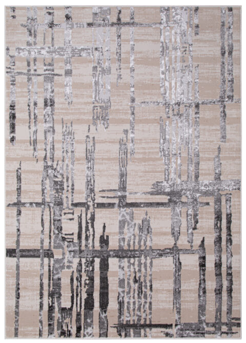 Dywan CrystalKremowy Brązowy Przetarcia Linie Efekt 3D