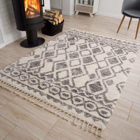 Dywan VersaySzary Kremowy Etniczny z Frędzlami