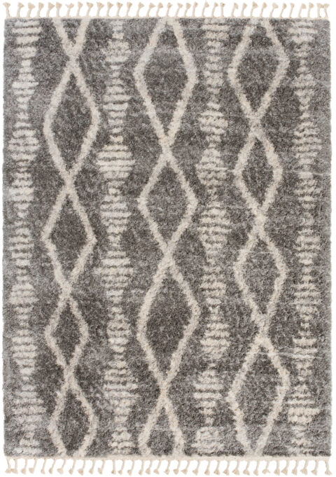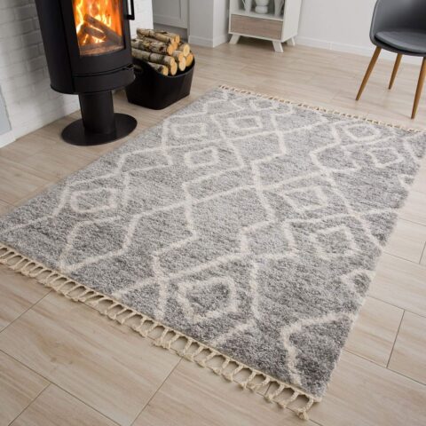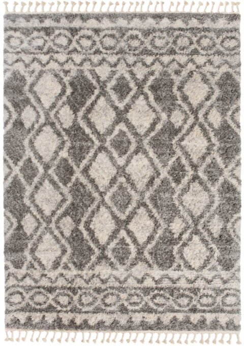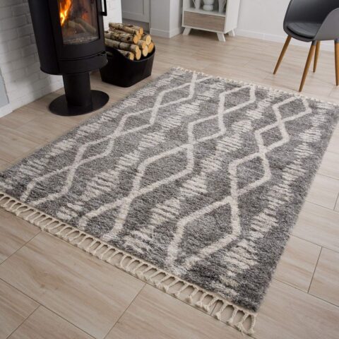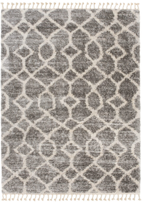 Dywan VersayCiemny Szary Kremowy Trellis z Frędzlami