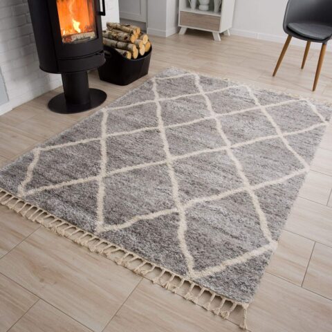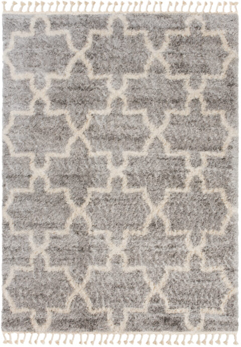 Dywan VersaySzary Kremowy Trellis z Frędzlami