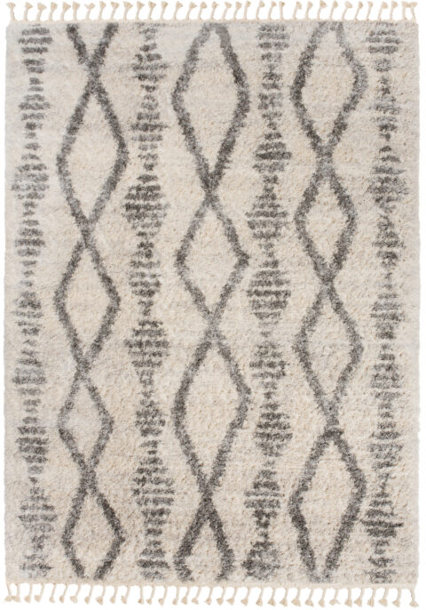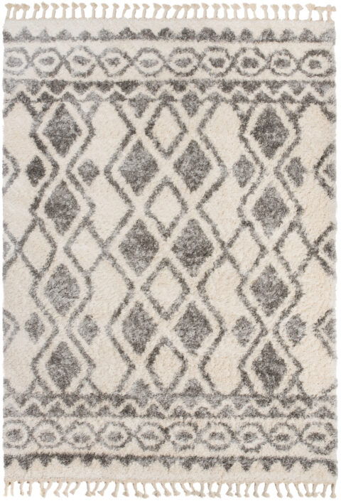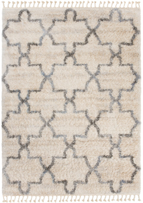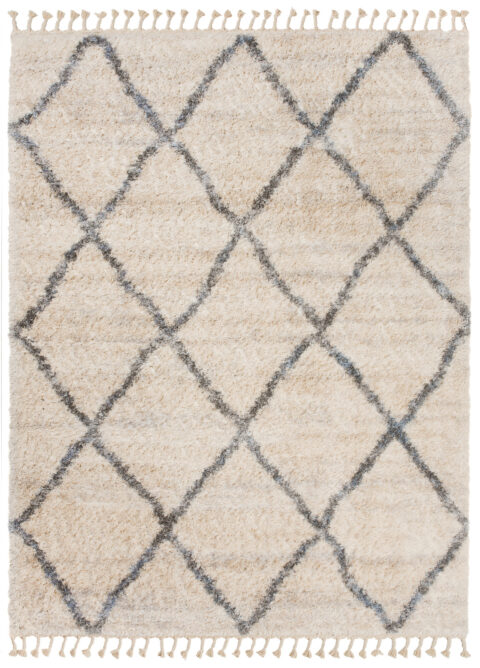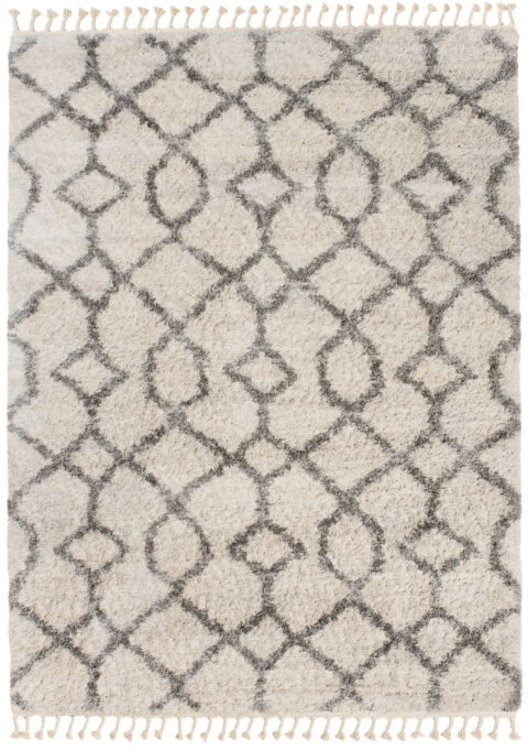 Dywan VersayKremowy Szary Trellis z Frędzlami