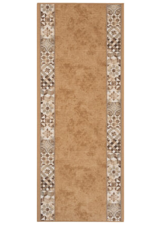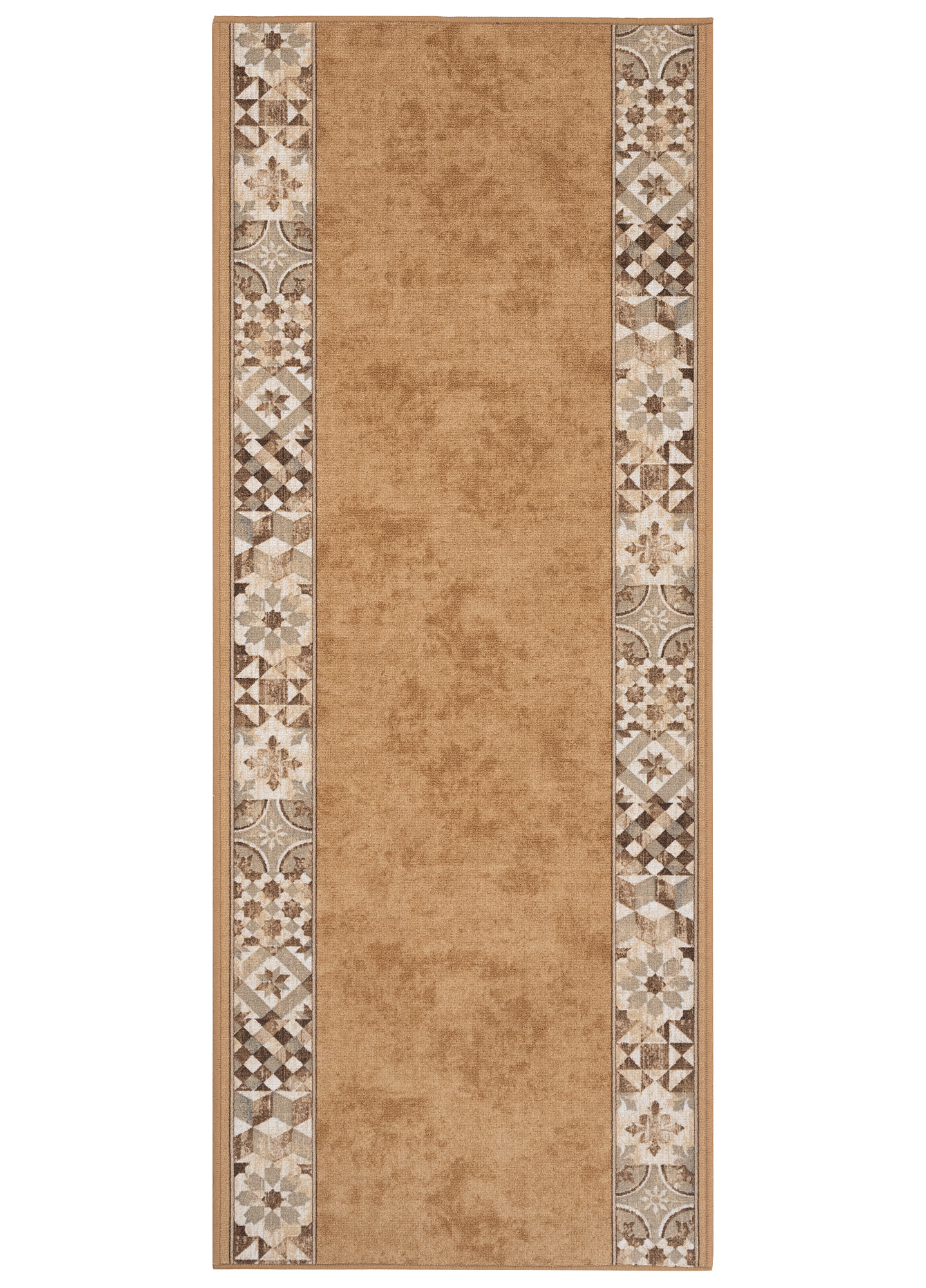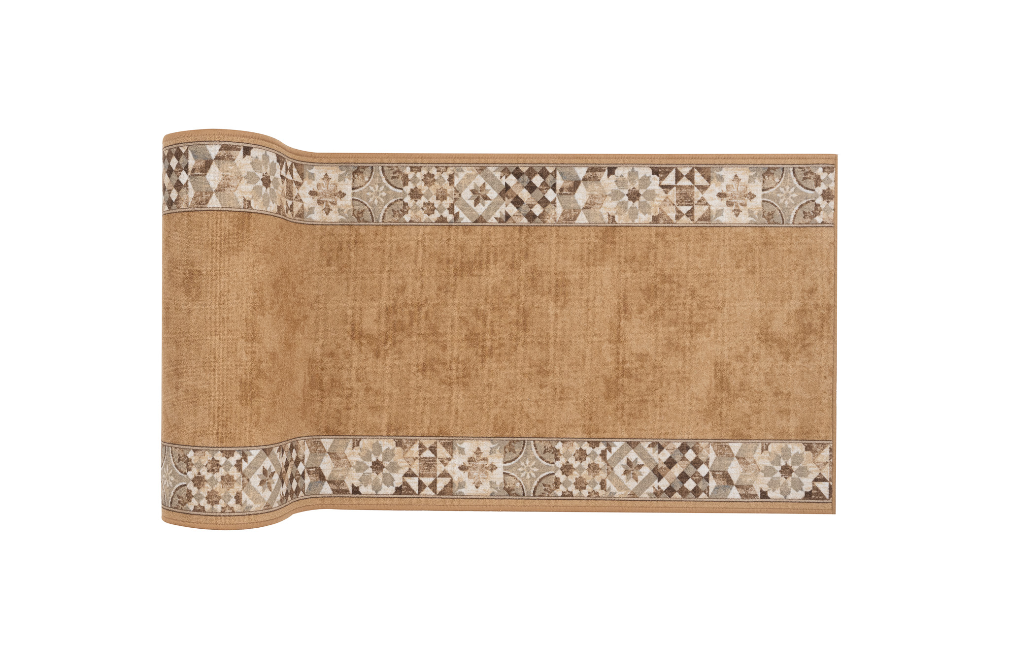 Stonowany, piaskowy kolor w połączeniu z eleganckim, geometrycznym wzorem na brzegach nadaje wnętrzom klasycznego, ciepłego charakteru. Chodnik ten świetnie wkomponuje się w różne style aranżacji, od nowoczesnych po bardziej tradycyjne.