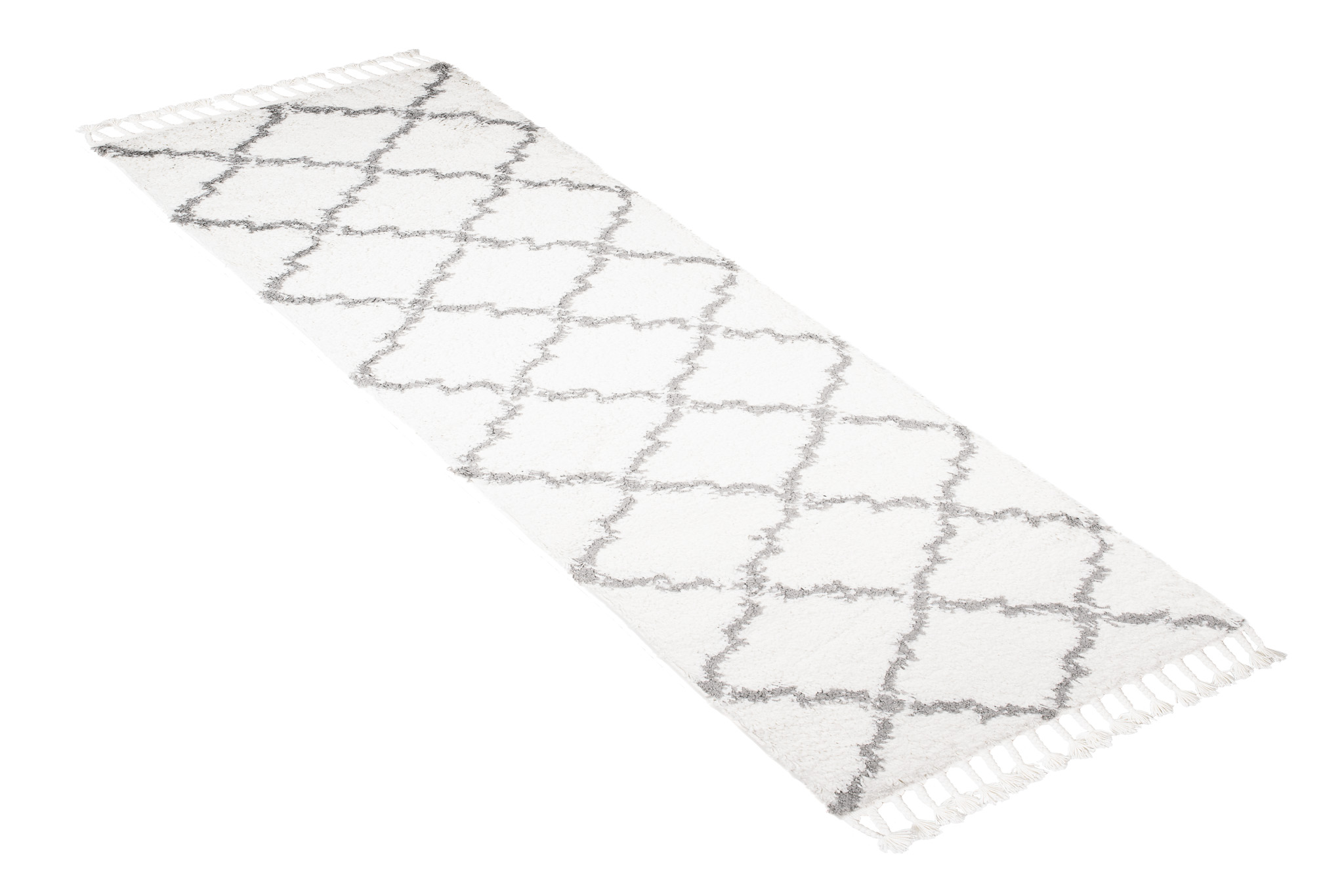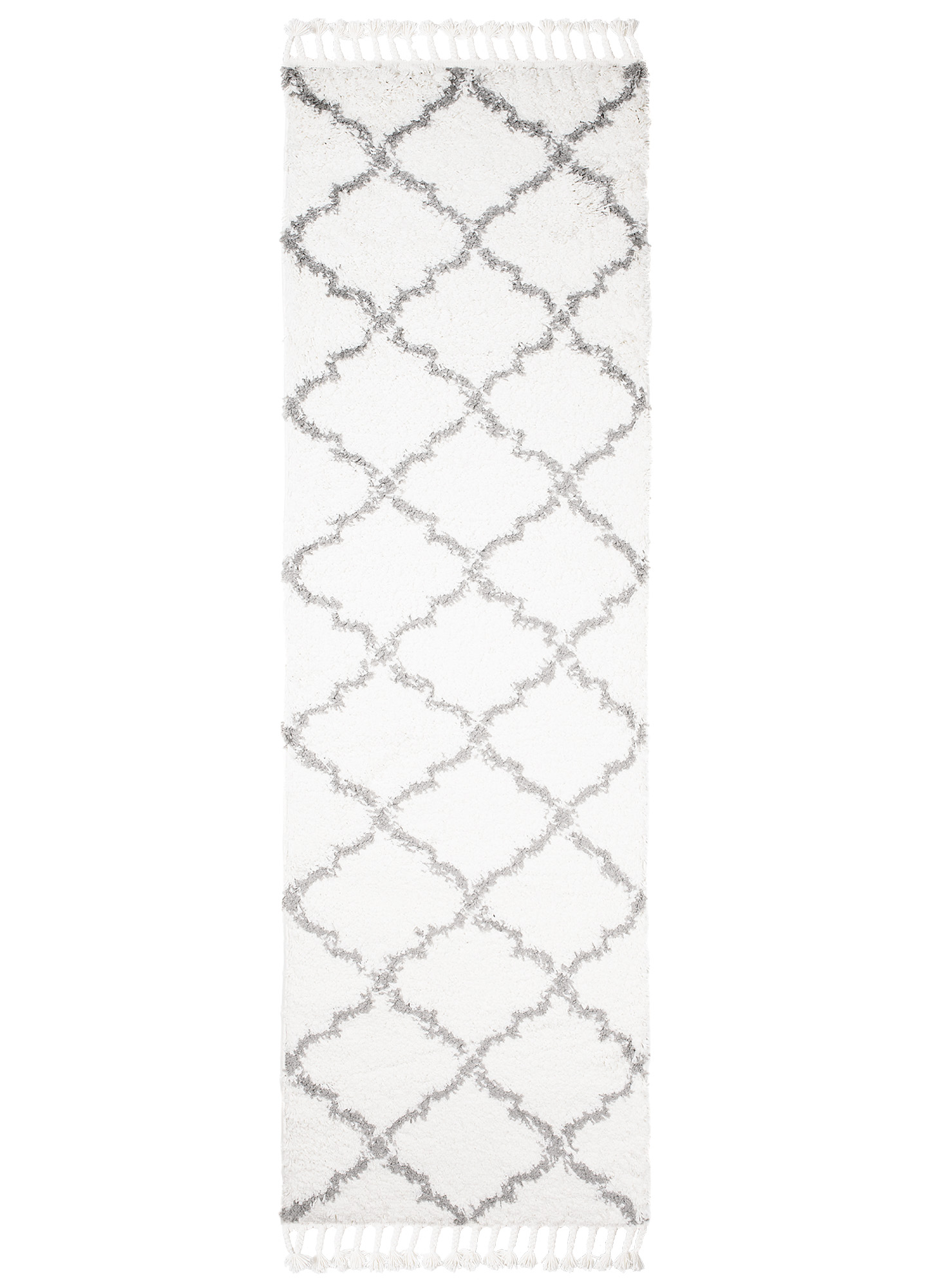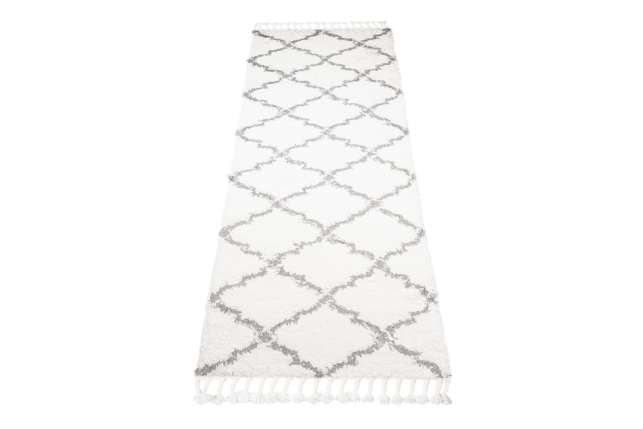 Chodnik Bohoz Frędzlami Kremowy Trellis Shaggy