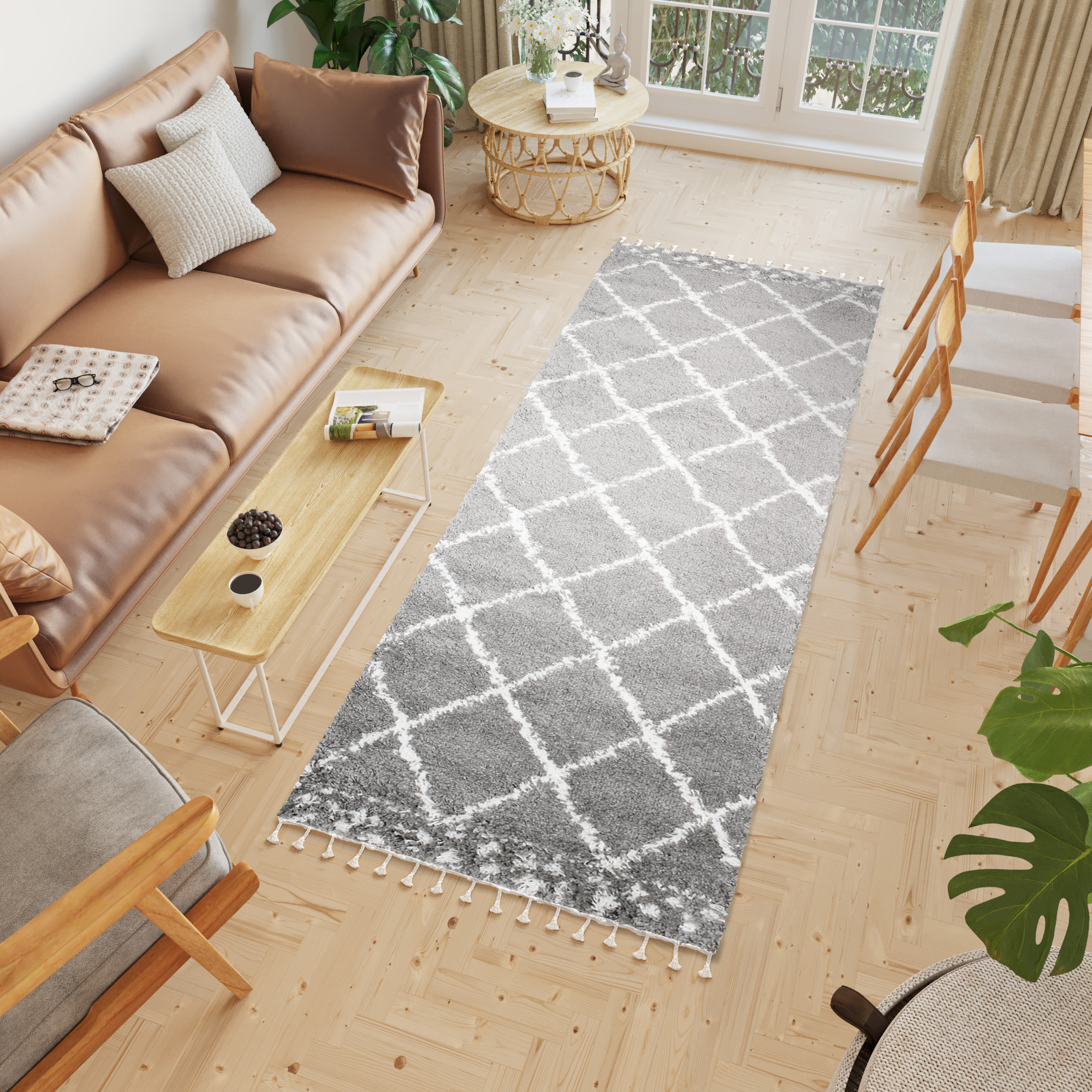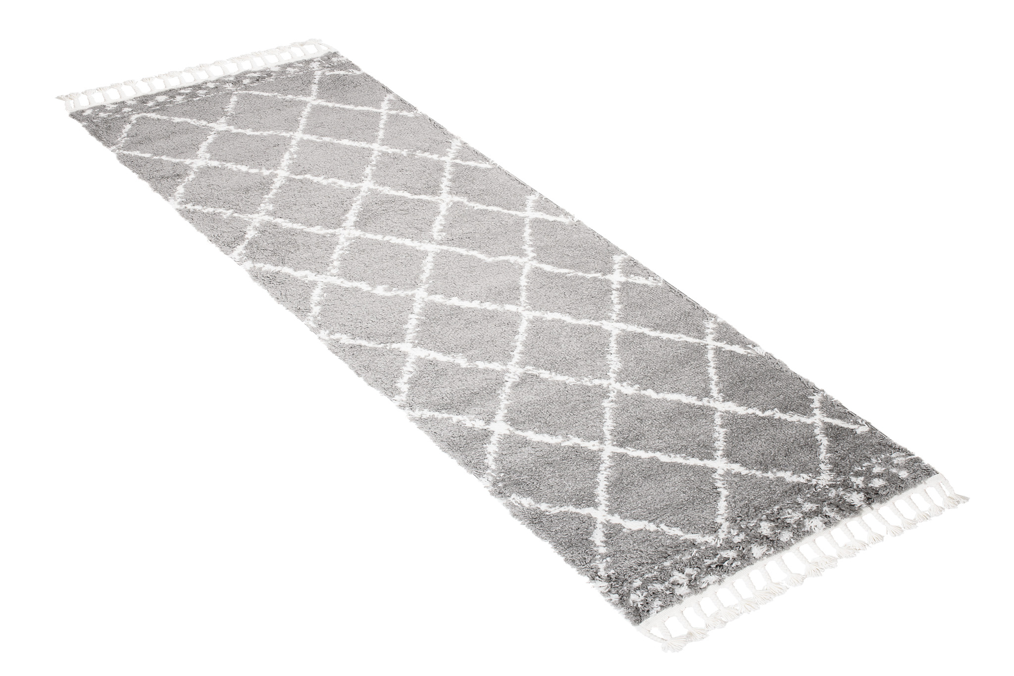 Chodnik Bohoz Frędzlami Szary Krata Kropki Shaggy