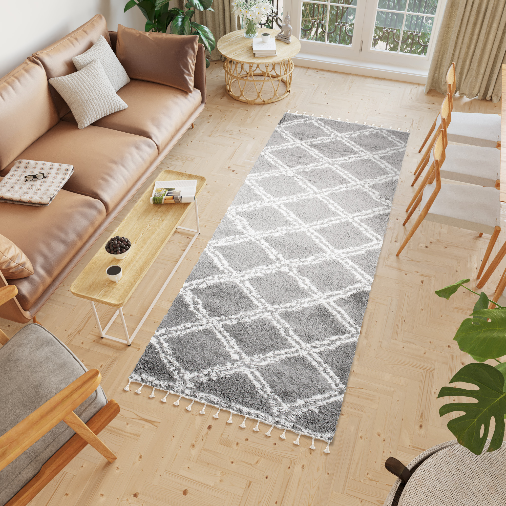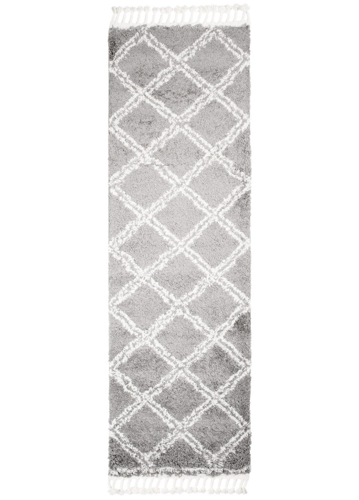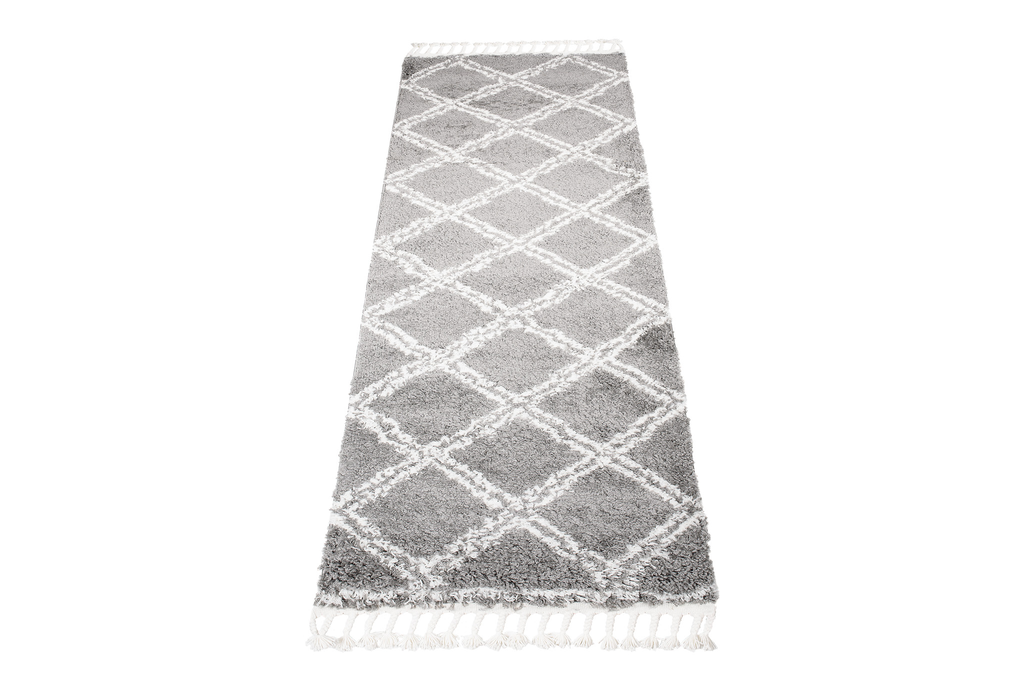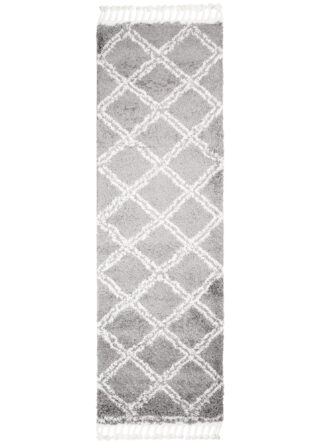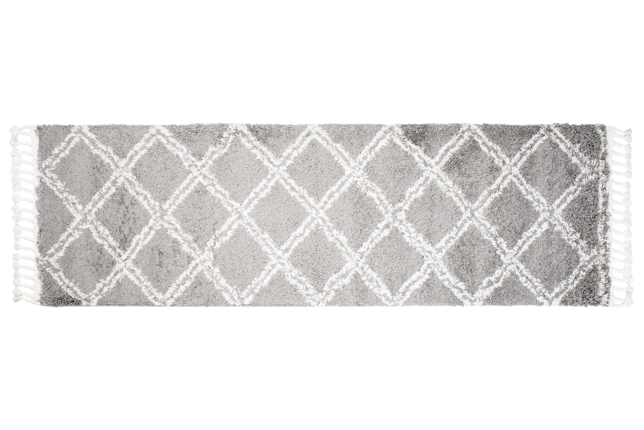 Chodnik Bohoz Frędzlami Szary Krata Shaggy