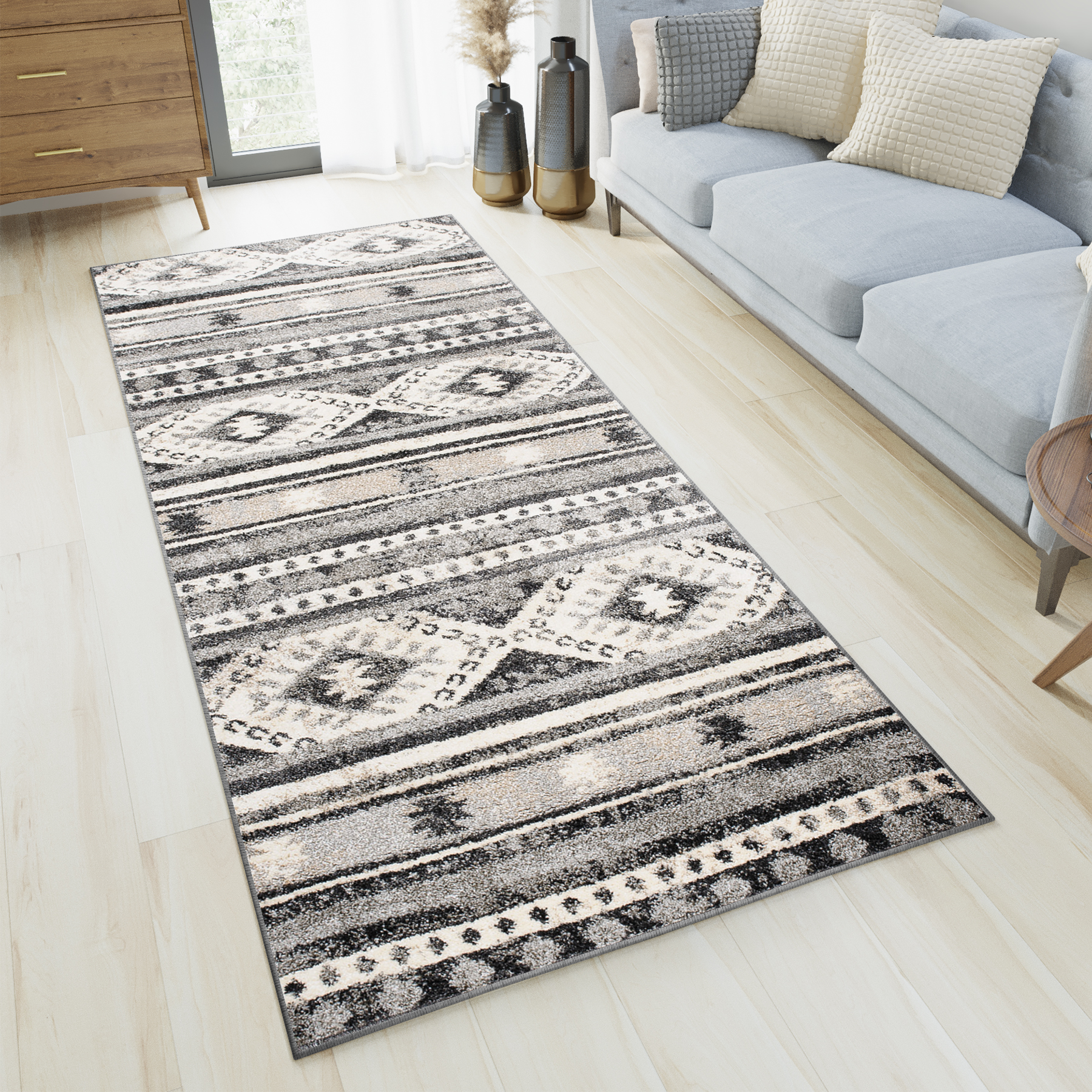 Chodnik EthnoSzary Czarny Geometryczny