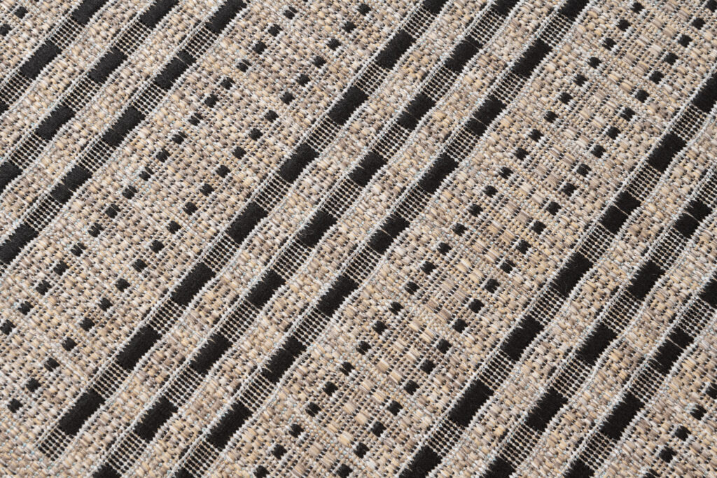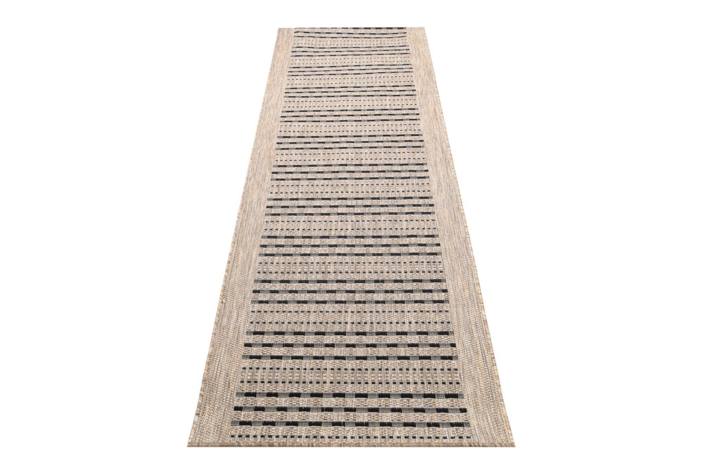 Naturalne odcienie beżu przełamane kontrastującymi, czarnymi akcentami wprowadzą elegancję do przestrzeni urządzonej w stylu boho, etnicznym, nowoczesnym czy rustykalnym. Chodnik świetnie komponuje się z meblami z naturalnego drewna, rattanu oraz z dodatkami w kolorze czerni, bieli i złota.