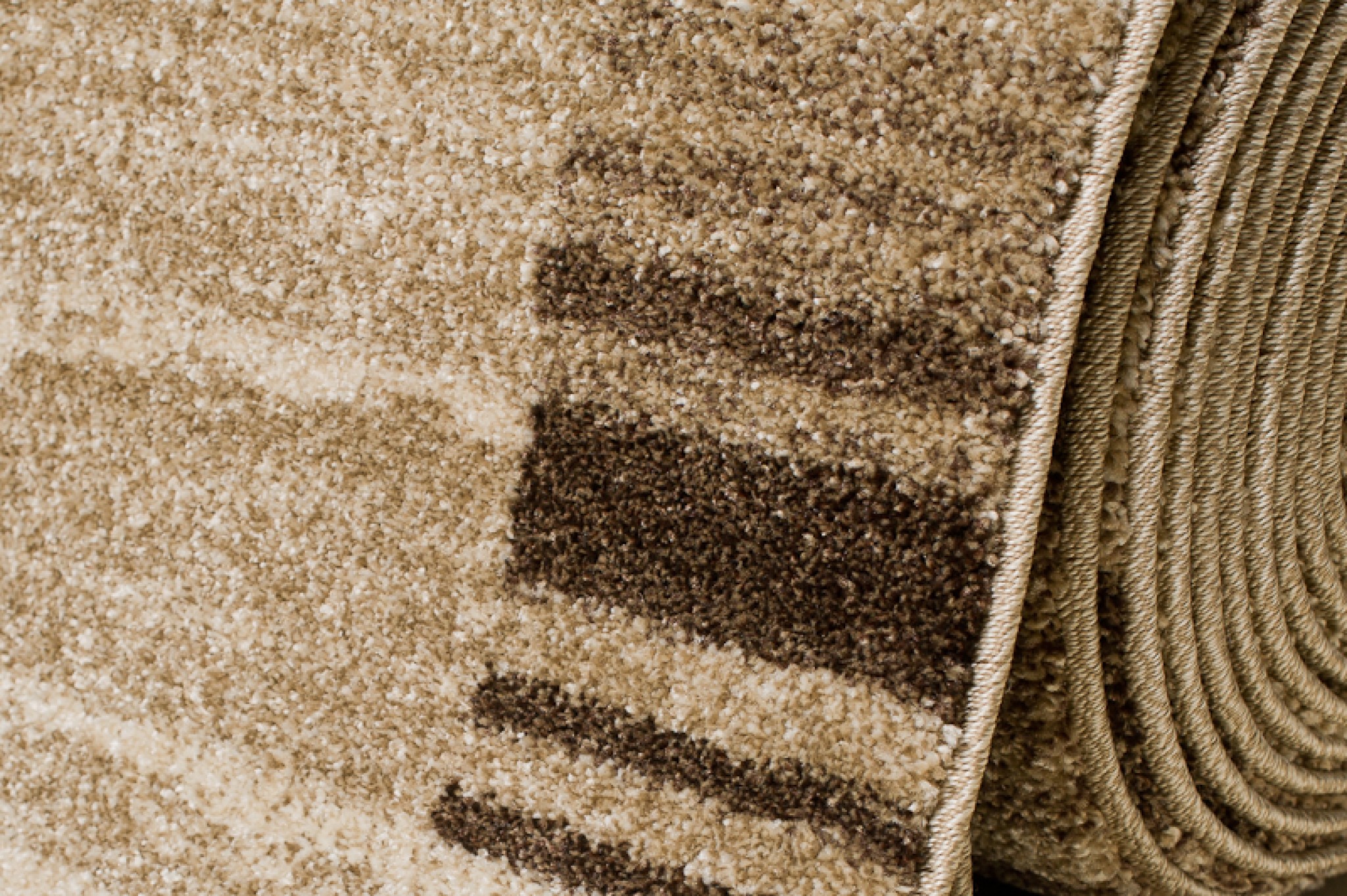 Wzór oparty na geometrycznych blokach w odcieniach beżu, brązu i kremu tworzy rytmiczny, dynamiczny efekt, który świetnie komponuje się z jasnym drewnem, bielą oraz ciepłymi dodatkami. Ten chodnik doskonale odnajdzie się w aranżacjach nowoczesnych, retro, mid-century modern oraz klasycznych z nutą współczesności.