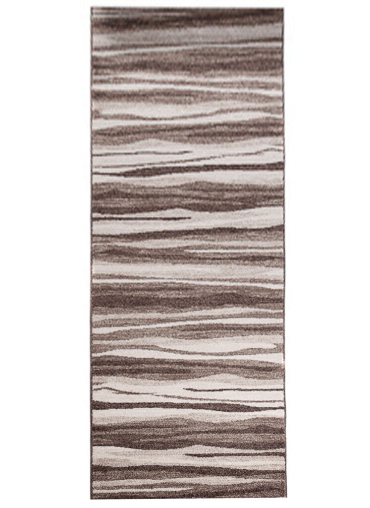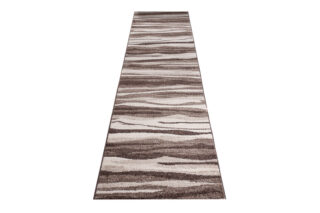 Chodnik Sari to propozycja dla tych, którzy szukają dekoracji łączącej nowoczesny design z inspiracją naturą. Jego wzór przypomina nieregularne, poziome linie, które przywołują skojarzenia z teksturą drewna lub piasku – dzięki czemu wprowadza do wnętrza harmonię i dynamikę zarazem. Wykonany z trwałego polipropylenu, posiada miękkie, krótkie runo (10 mm), które jest łatwe do utrzymania w czystości.