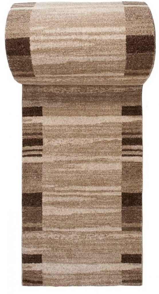 Wzór oparty na prostokątnych blokach w ciepłych tonacjach beżu i brązu dodaje wnętrzu przytulności, jednocześnie wprowadzając geometryczną regularność. Chodnik idealnie komponuje się z naturalnym drewnem, jasnymi podłogami i dekoracjami w stylu klasycznym, rustykalnym, boho oraz nowoczesnym.