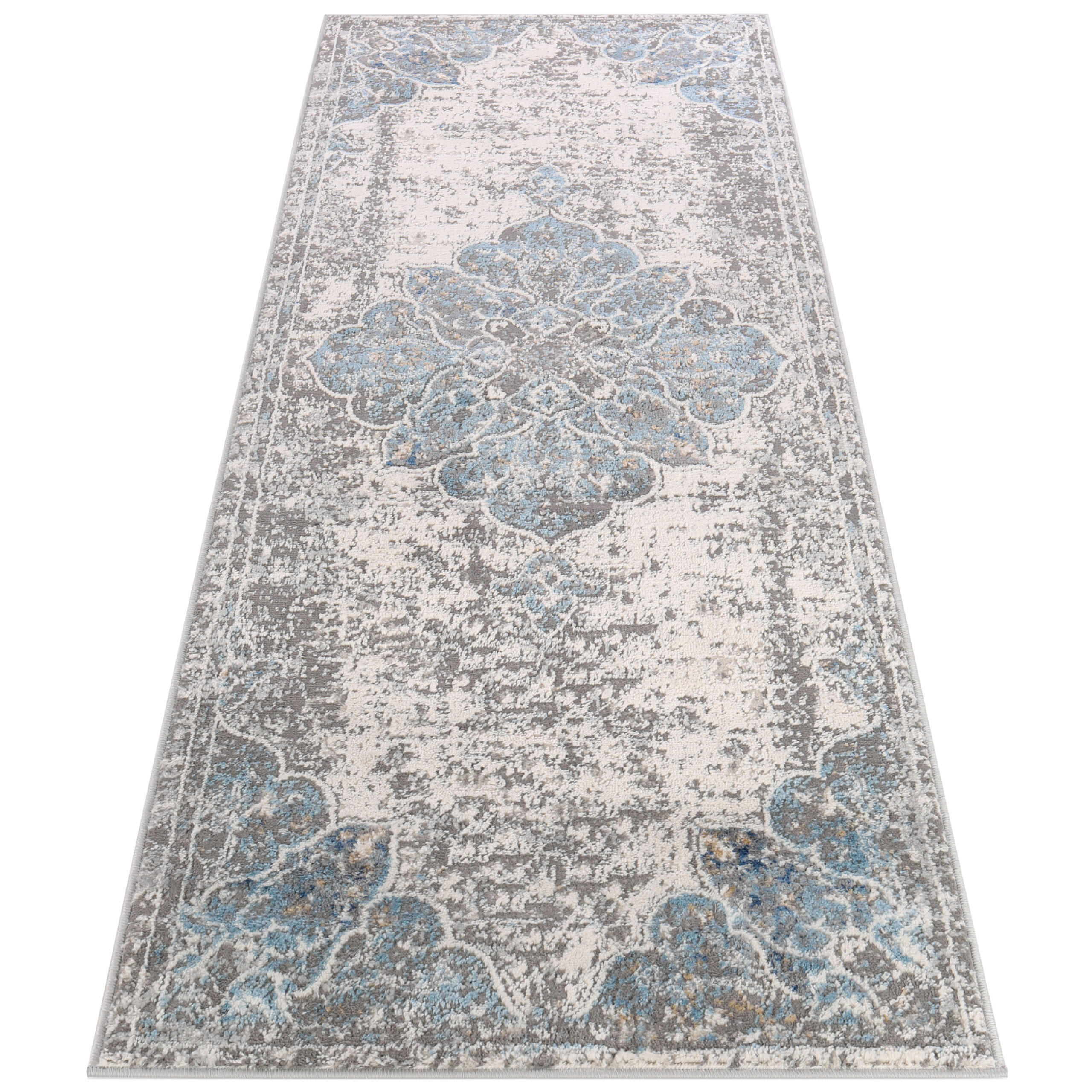 Chodnik ValleySzary Niebieski Vintage Kwiatowy