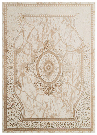 Ten elegancki dywan w odcieniach brązu i beżu to prawdziwy ukłon w stronę klasyki. Wzór rozety umieszczony w centralnej części nadaje dywanowi wyrafinowany, tradycyjny charakter, który przyciąga wzrok i dodaje wnętrzu szlachetności. Połączenie ciepłych odcieni brązu i beżu w tym dywanie tworzy harmonijną kompozycję, która doskonale ociepli każde pomieszczenie, wprowadzając do niego atmosferę przytulności i elegancji.