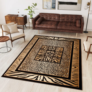 Dywan AtlasCzarny Brązowy Print Zwierzęcy Safari