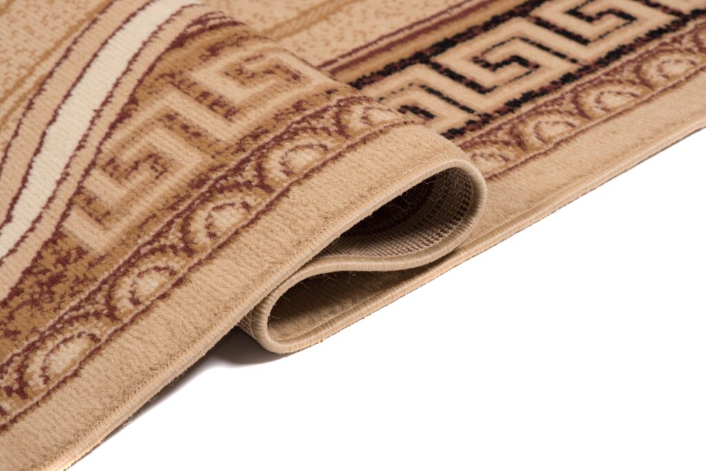 Dywan beżowo-brązowy wykonano z wysokiej jakości materiałów, co zapewnia jego trwałość i łatwość w pielęgnacji. To stylowy i praktyczny wybór dla miłośników klasycznych akcentów, którzy cenią sobie piękno i wygodę w codziennym otoczeniu. To doskonały element, który pozwala dopełnić całość aranżacji i wprowadza do wnętrza atmosferę ciepła i harmonii.