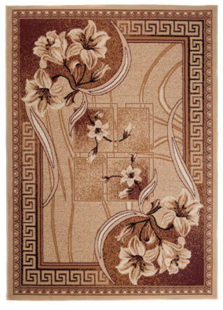 Ten beżowo-brązowy dywan zachwyca klasycznym wzorem kwiatowym, który dodaje wnętrzu wyjątkowego uroku i elegancji. Kwiatowe motywy w delikatnych odcieniach beżu i brązu tworzą harmonijną kompozycję, idealnie wpisującą się w styl klasyczny oraz prowansalski. Beżowo-brązowy dywan w kwiaty sprawdzi się szczególnie dobrze w pomieszczeniach z jasnymi, drewnianymi meblami, w których ciepła kolorystyka nada wnętrzu przytulny, domowy charakter. Subtelne detale kwiatowe podkreślają wyjątkowość dywanu, czyniąc go doskonałym dodatkiem do salonu czy sypialni.