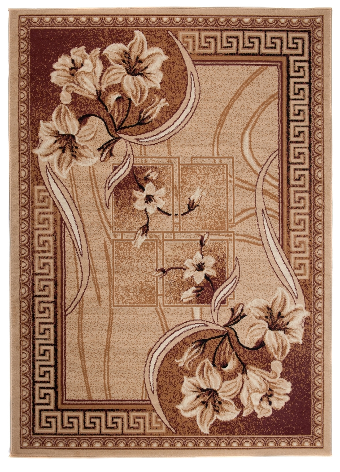 Dywan Atlasw Kwiaty Beżowo Brązowy