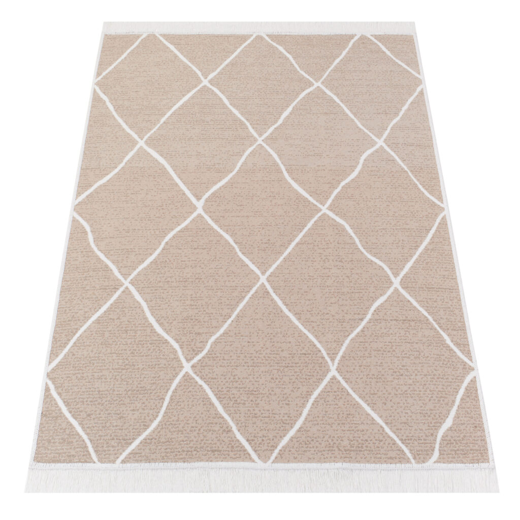 Dywan AztecaBawełniany Beżowy Romby z Frędzlami