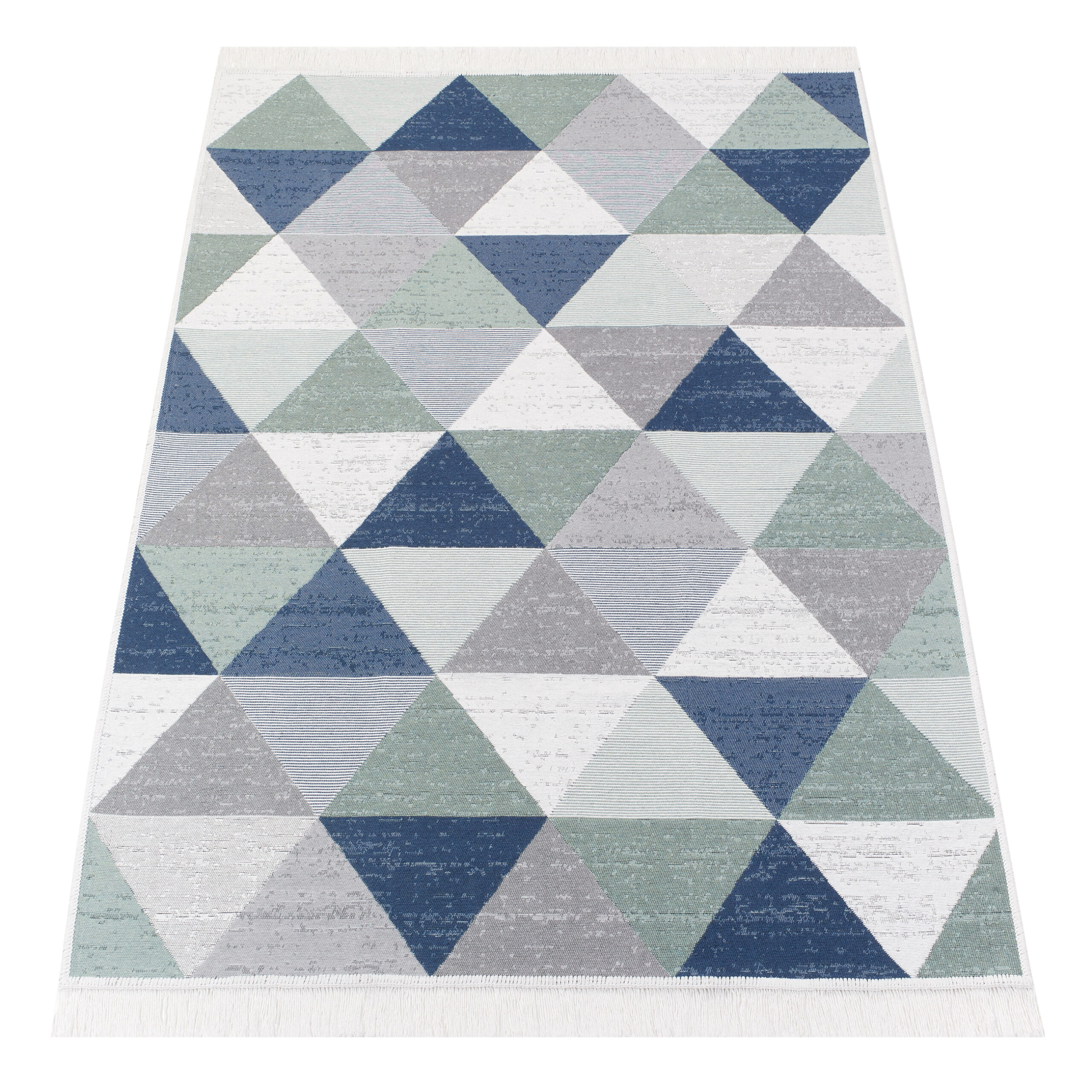 Dywan AztecaBawełniany Szary Niebieski Zielony z Frędzlami