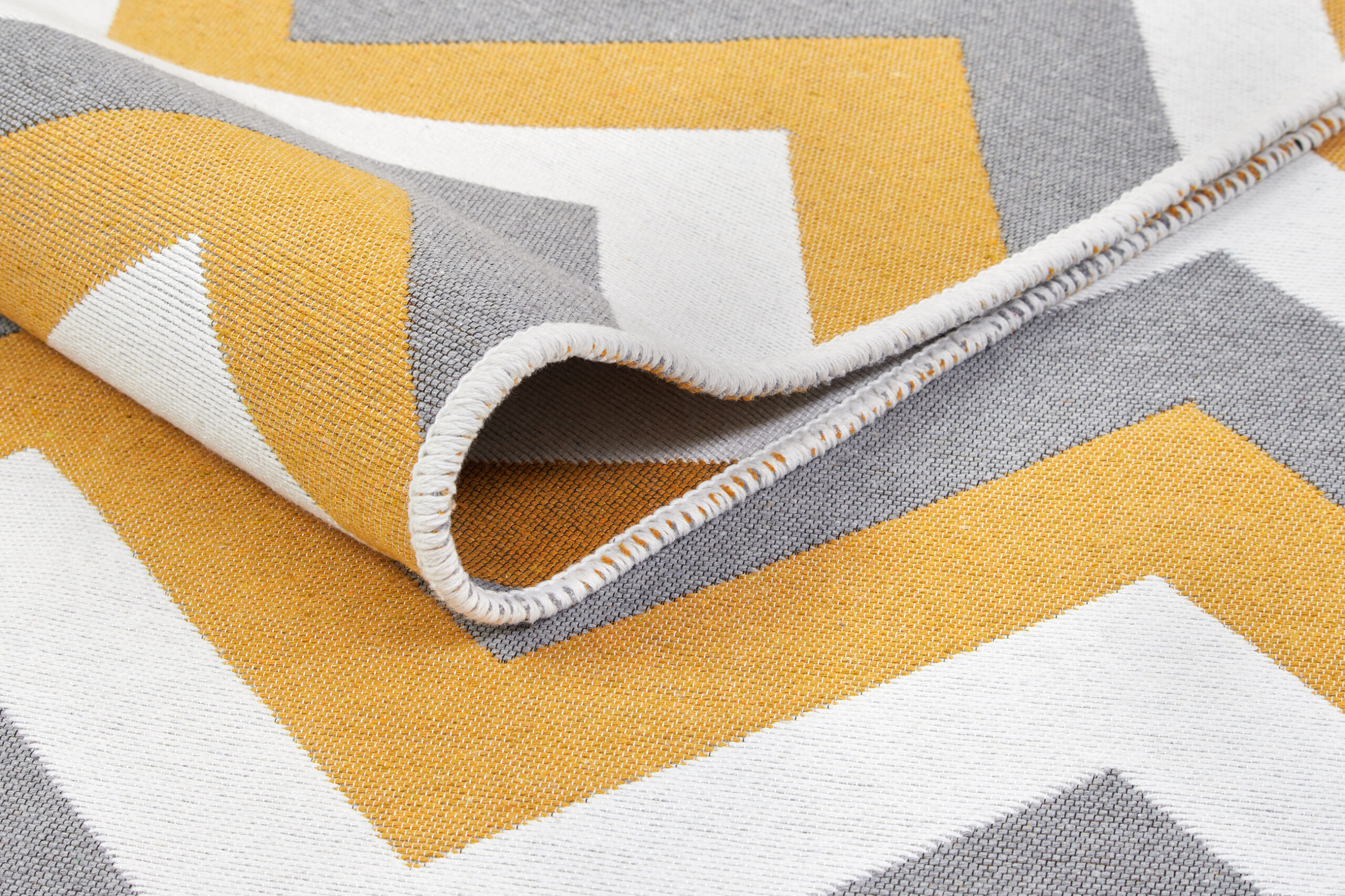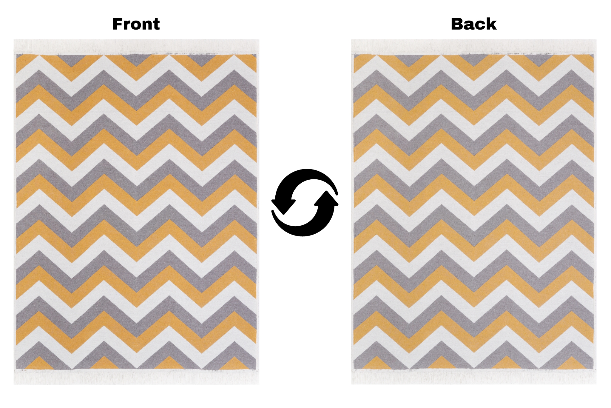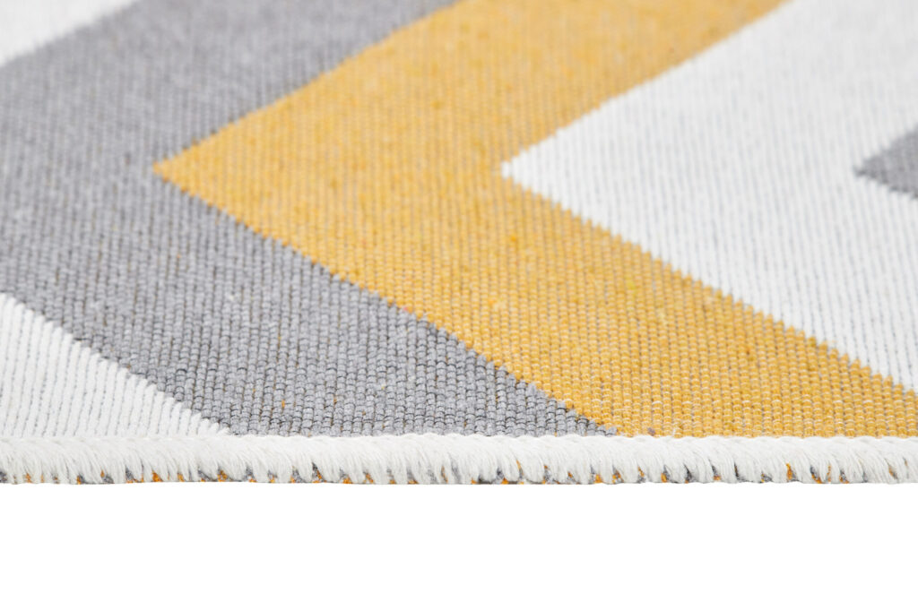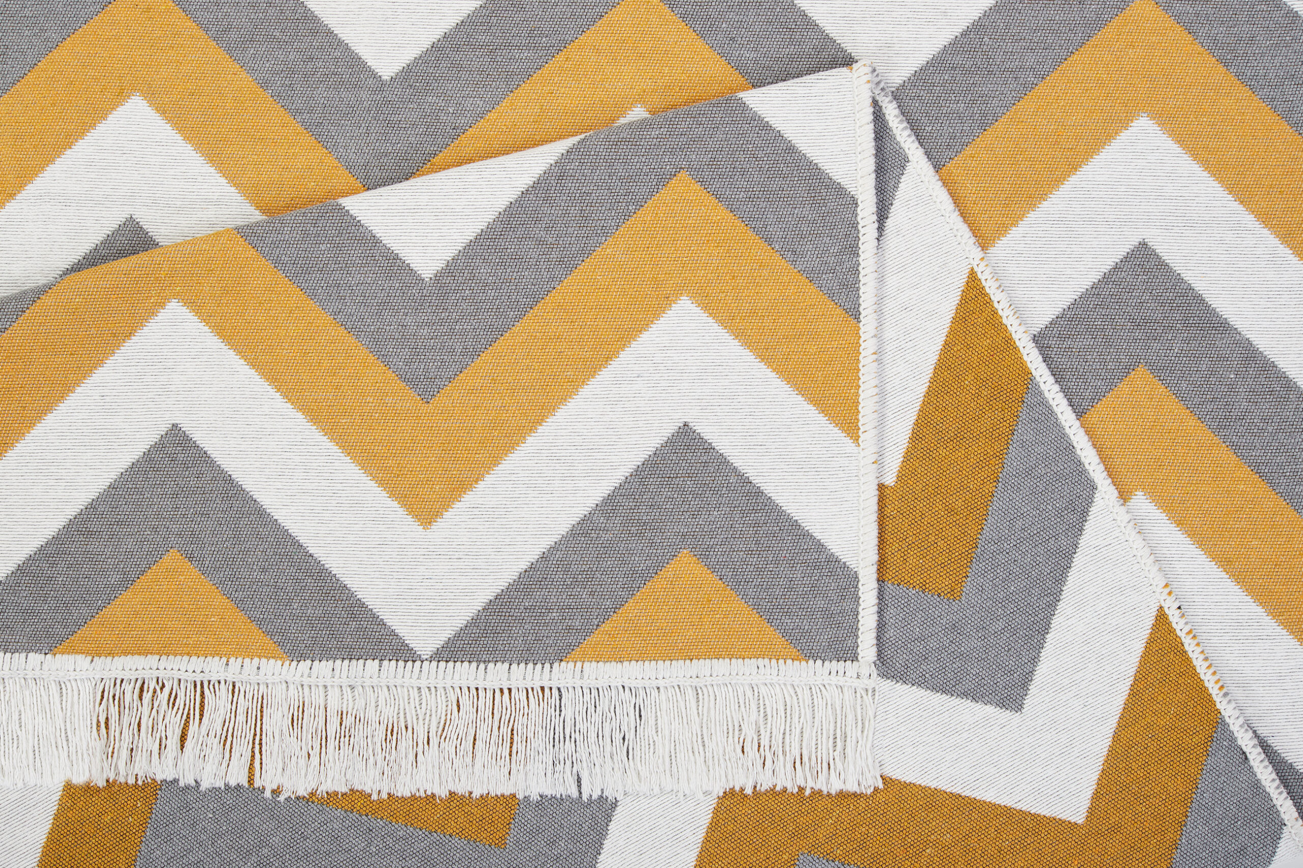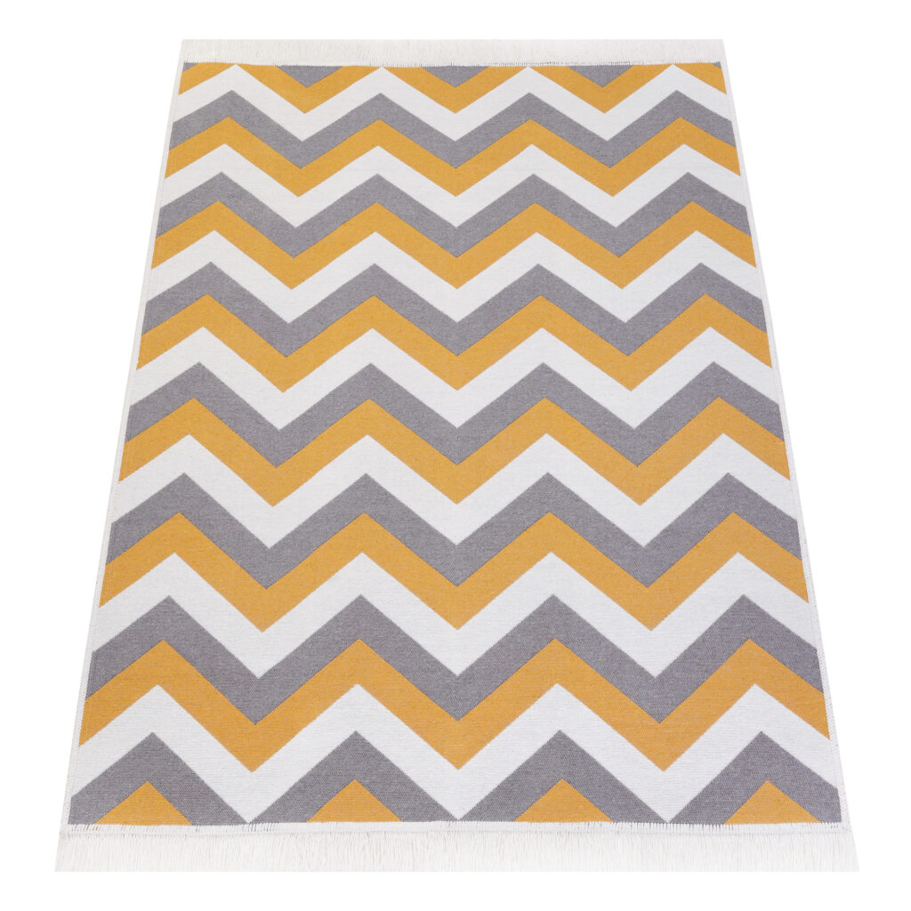 Dywan AztecaBawełniany Szary Żółty ZygZaki z Frędzlami