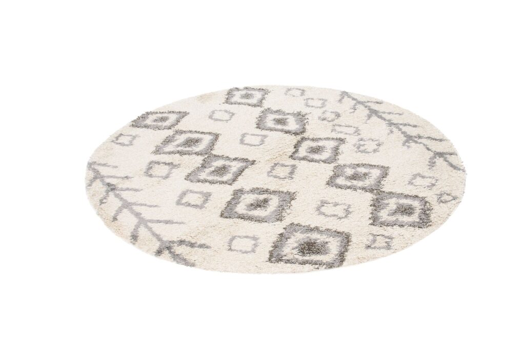 Dywan BohoOkrągły Kremowy Etniczny Shaggy